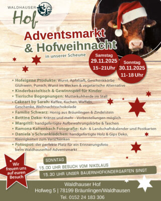 - Adventsmarkt & Hofweihnacht am 29. & 30.11.2025 im Waldhauser Hof in der Scheune